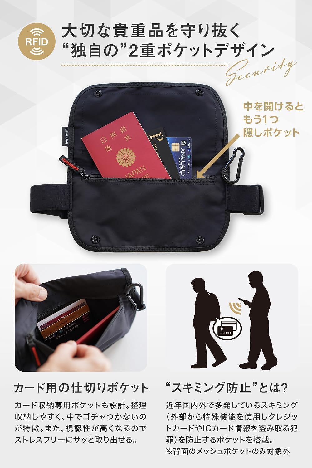 セキュリポ®︎ スマート防犯×次世代のセキュリティポーチ スキミング防止 薄型 軽量 撥水 ウエストポーチ Mサイズ SECURIPO